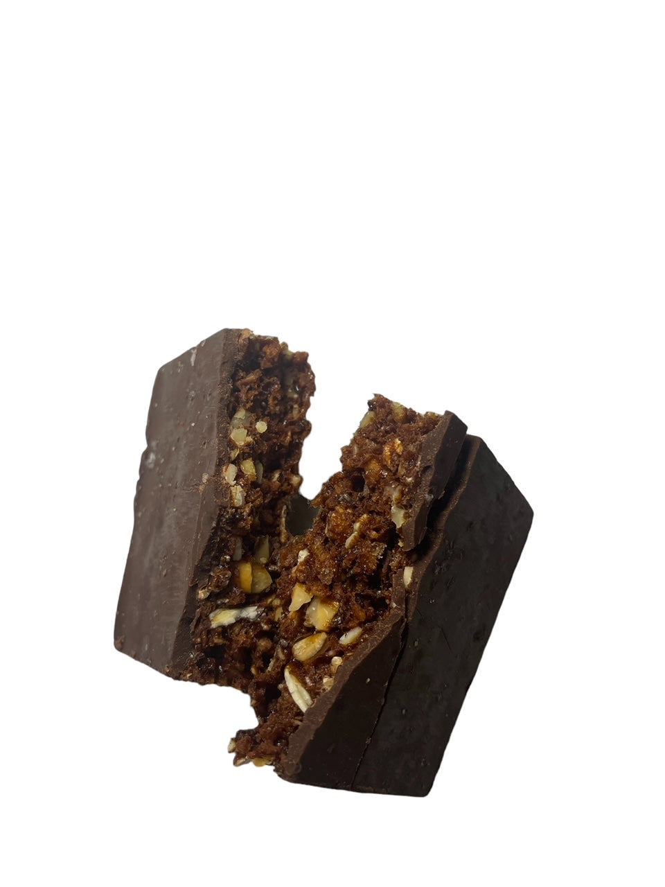 Homemade granola bars featuring dark chocolate, raw local honey, bee pollen & more!